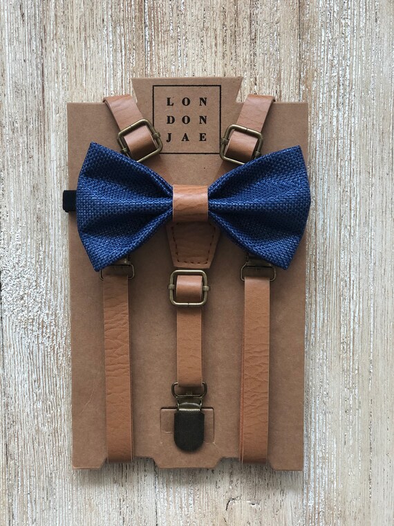 Groomsmen Suspenders And Bow Tie Set Navy Blue Burlap With Etsy