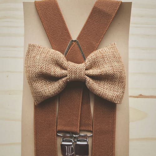 Khaki Burlap Bow Tie For Men S Brown Suspenders For Etsy